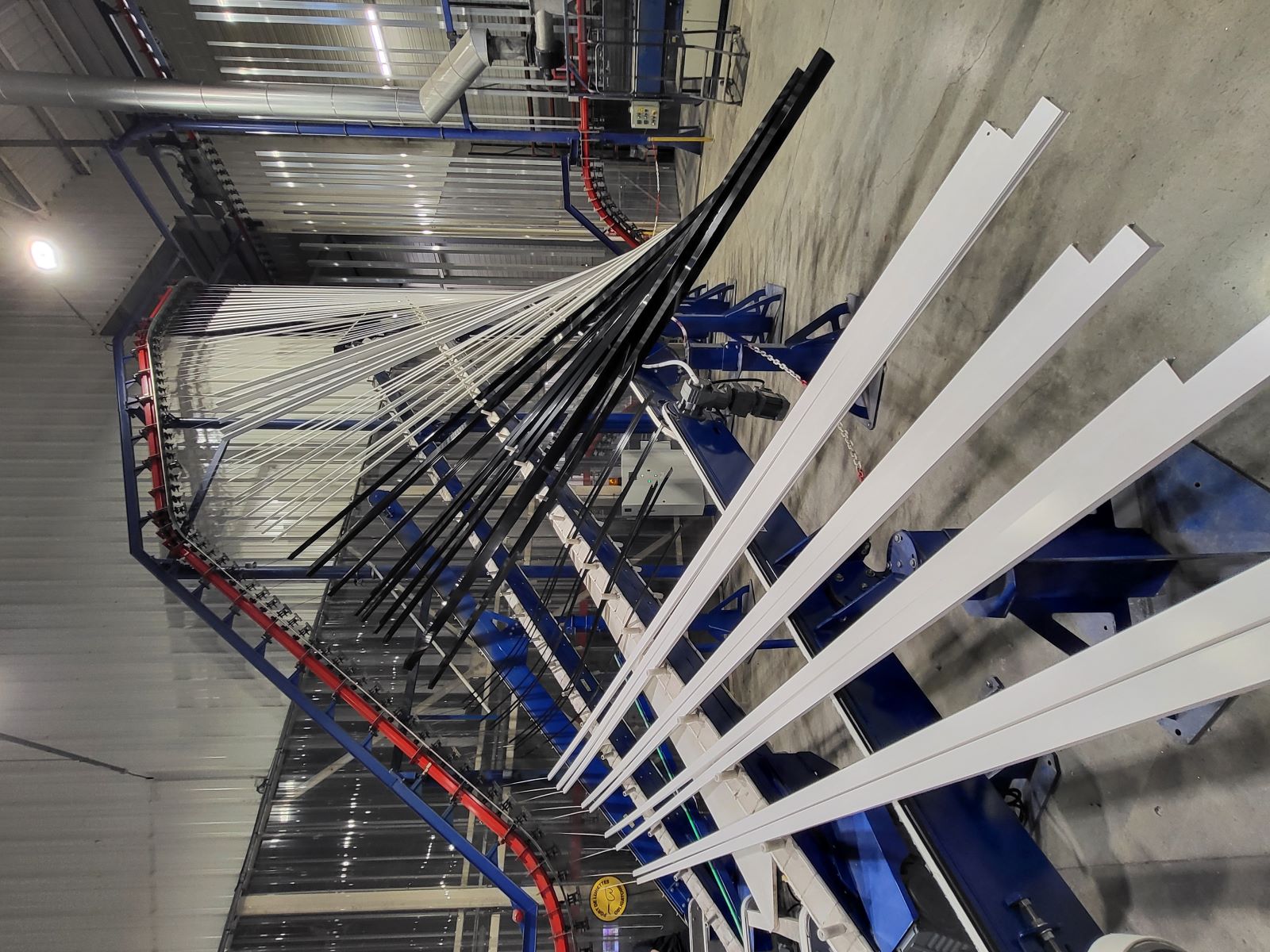 Une chaine verticale équipée de 2 cabines de poudrage automatiques.